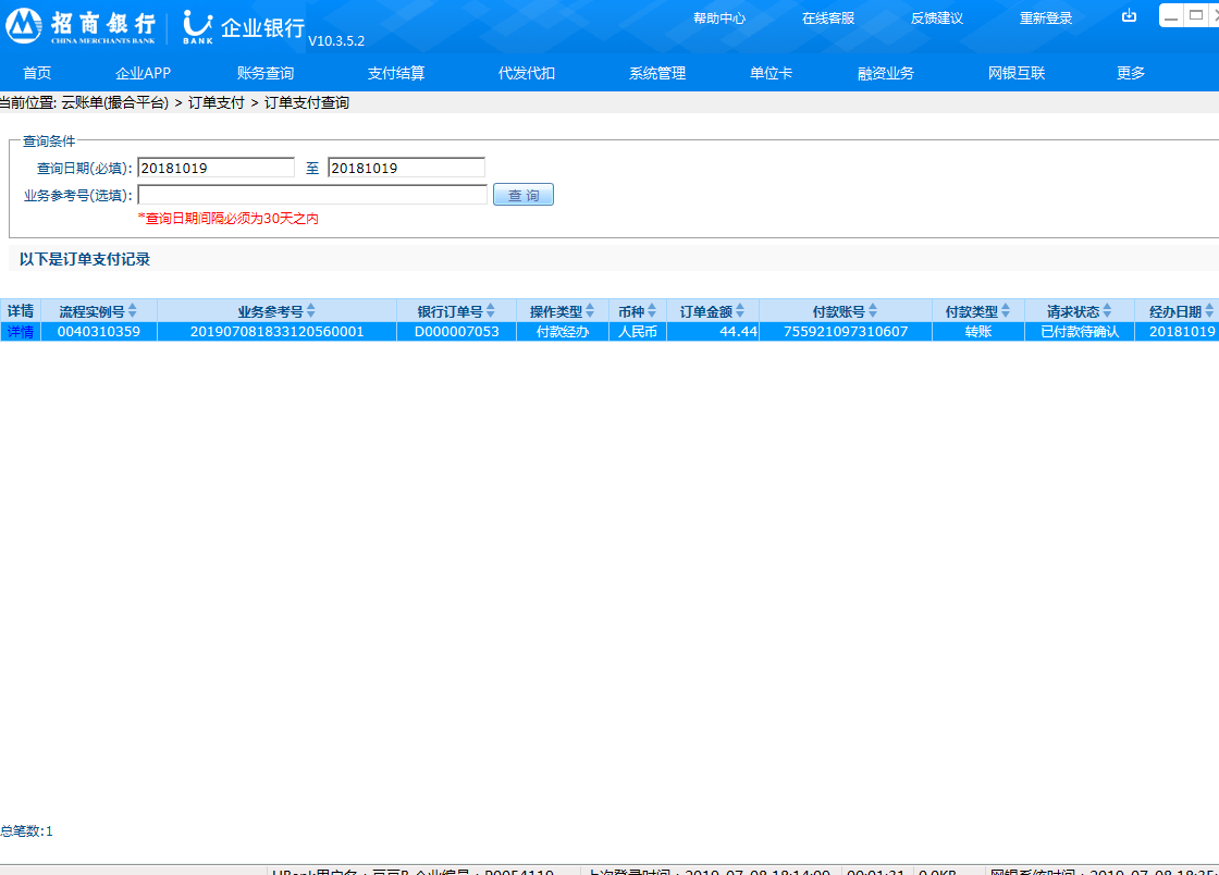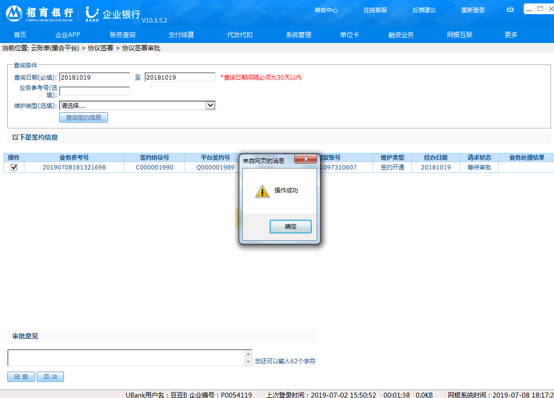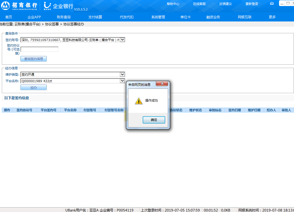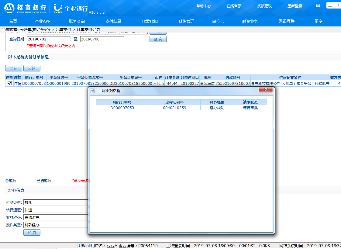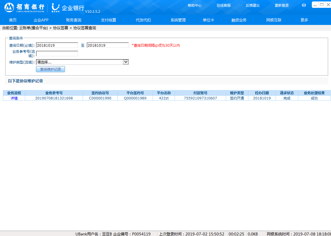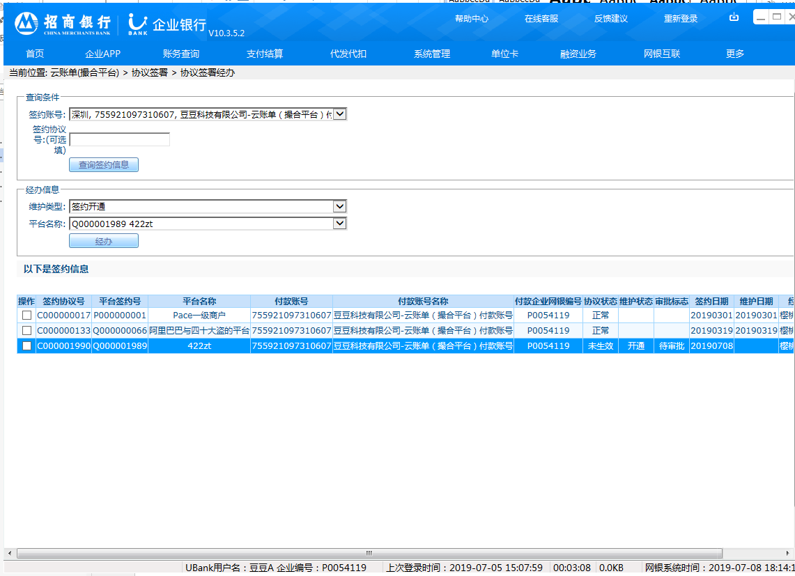 2.企业网银开通“云账单(交易平台)”